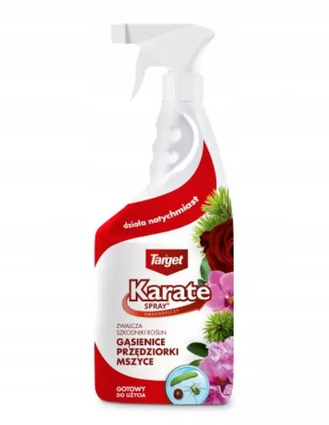 Karate Spray to środek owadobójczy w formie mikroemulsji gotowej do użycia, o działaniu kontaktowym i żołądkowym, przeznaczony do zwalczania szkodników gryzących i ssących. Na roślinie działa powierzchniowo. Środek przeznaczony do stosowania w amatorskiej uprawie roślin ozdobnych, jabłoni, warzyw kapustnych, ogórka i papryki w ogrodach przydomowych i w ogrodach działkowych.