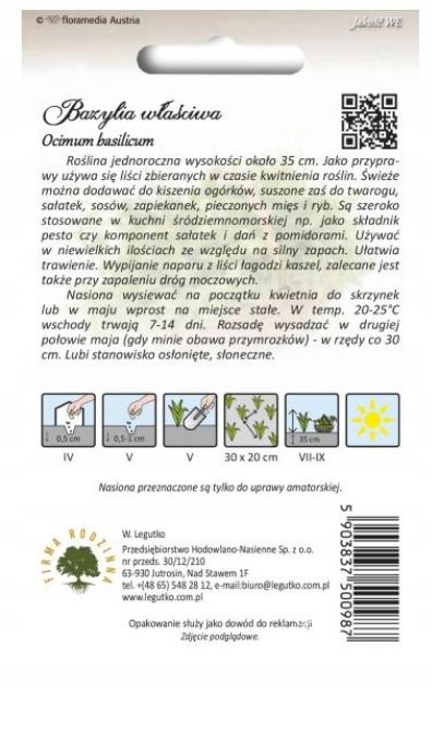 LEGUTKO Bazylia właściwa zielonolistna 1g