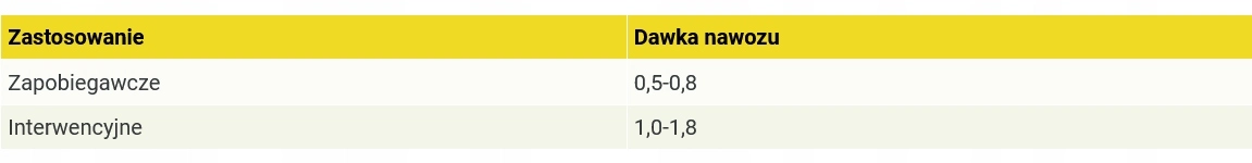 W przypadku trawników intensywnie wykorzystywanych, dawki mogą być nieco wyższe.