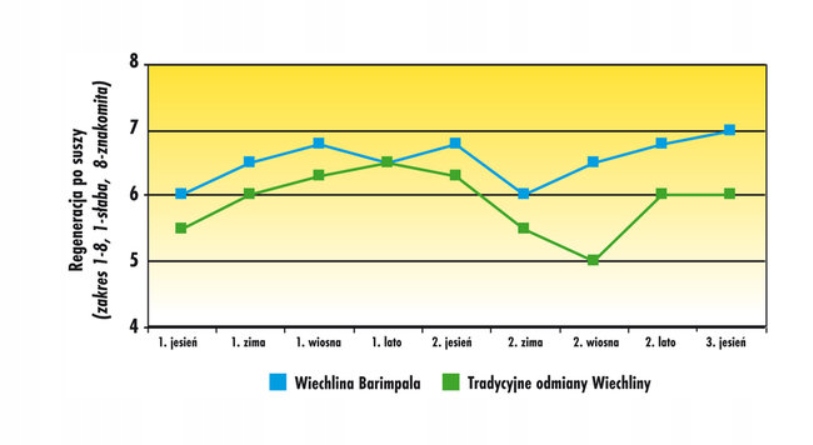 Liczba odmian tego gatunku jest bardzo duża, ale Water Saver zawiera wyłącznie te, które dział badawczy Barenbrug wybrał ze względu na ich odporność na przesuszenie, zimotrwałość oraz wytrzymałość na deptanie. Jedną z takich odmian jest Barimpala, która dobrze radzi sobie zarówno podczas suszy, jak i w zimie.